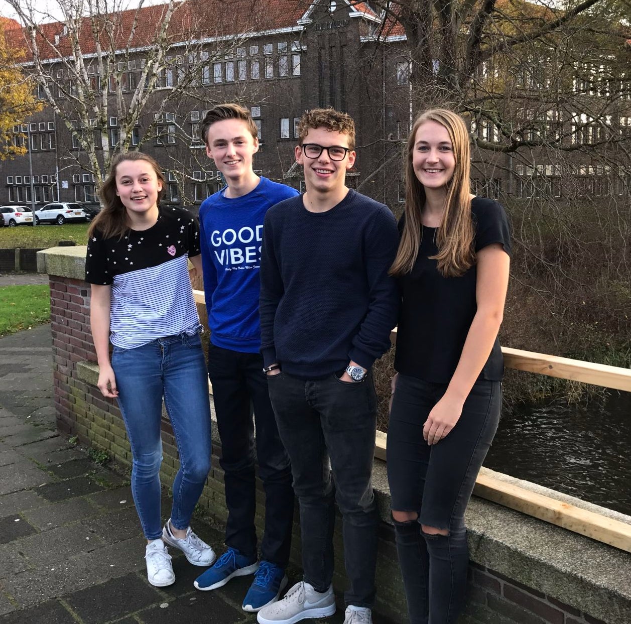 Wij zijn Melanie Rijgersberg, Mees de Boer, Noëlle Koomen en Sil Oeldrich.